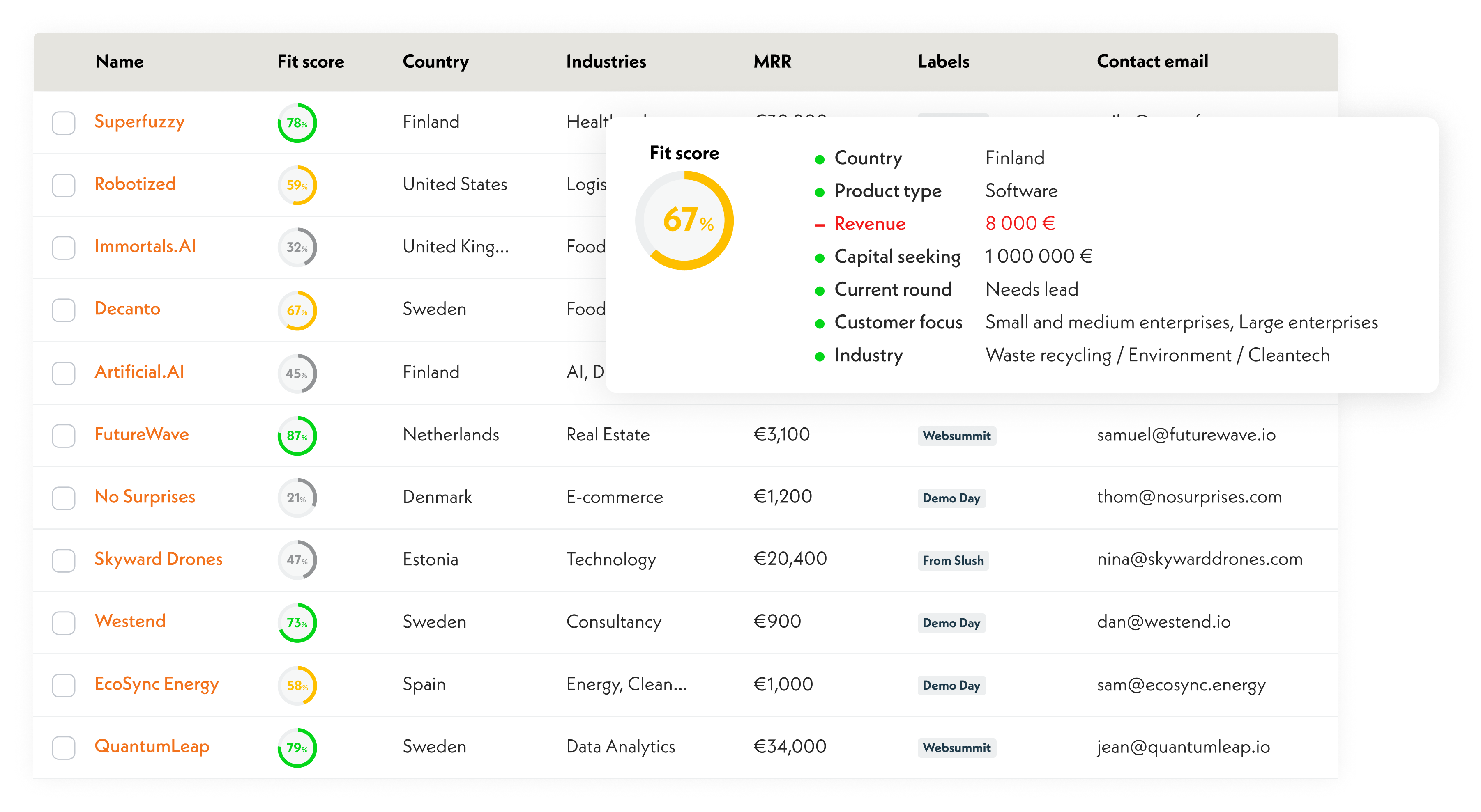 Avoid spending days and thousand of euros researching different investor databases. Just upload your pitch deck, answer a few questions and let AI find the most relevant investors in Europe.