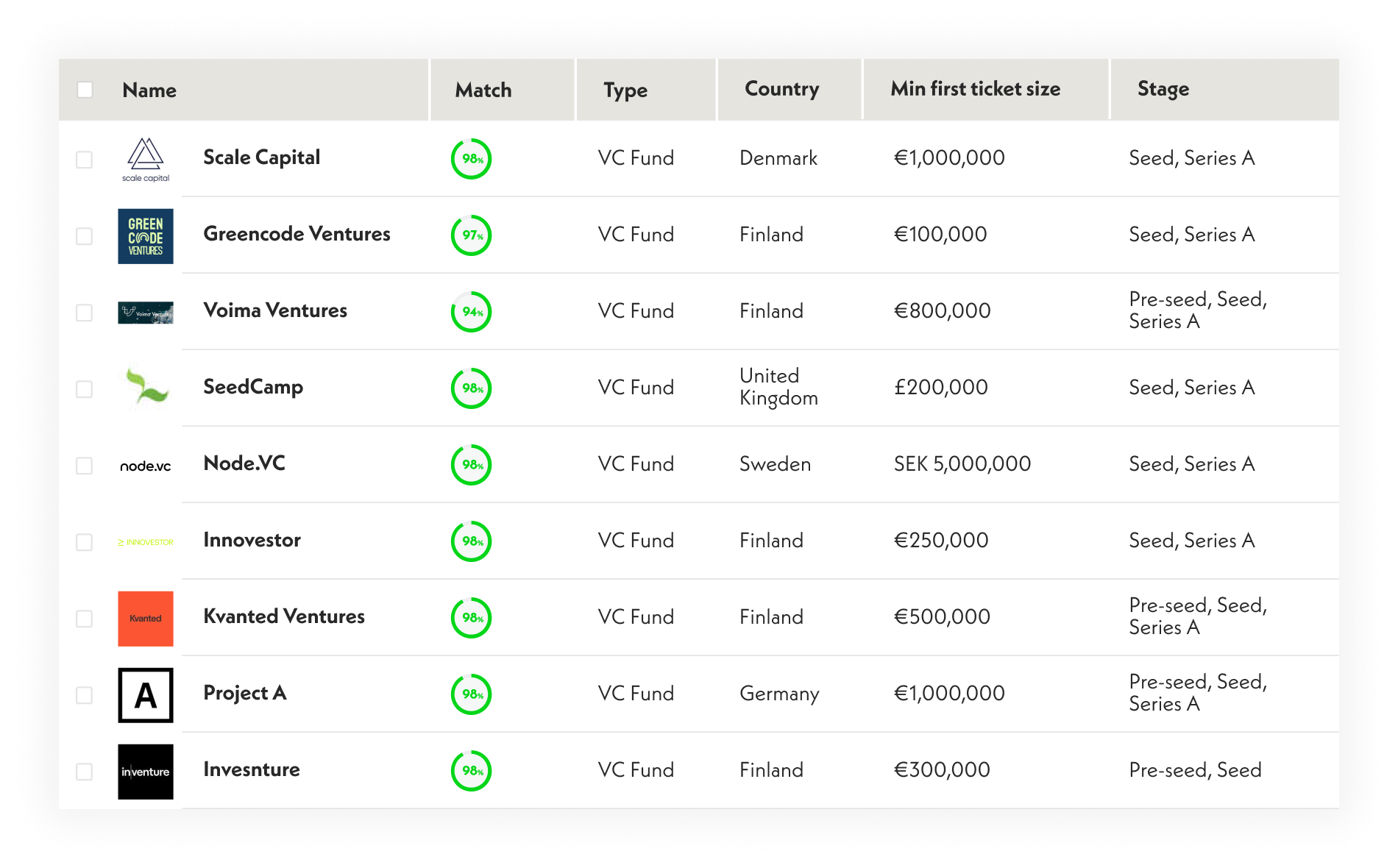 Well, it's a lot of code in detail 🙂 But at a high level, we automate what seems trivial but eventually takes a lot of your time. For example, we look at the industry, ticket size, focus areas, and naturally the stage, and geographical mandate, etc.